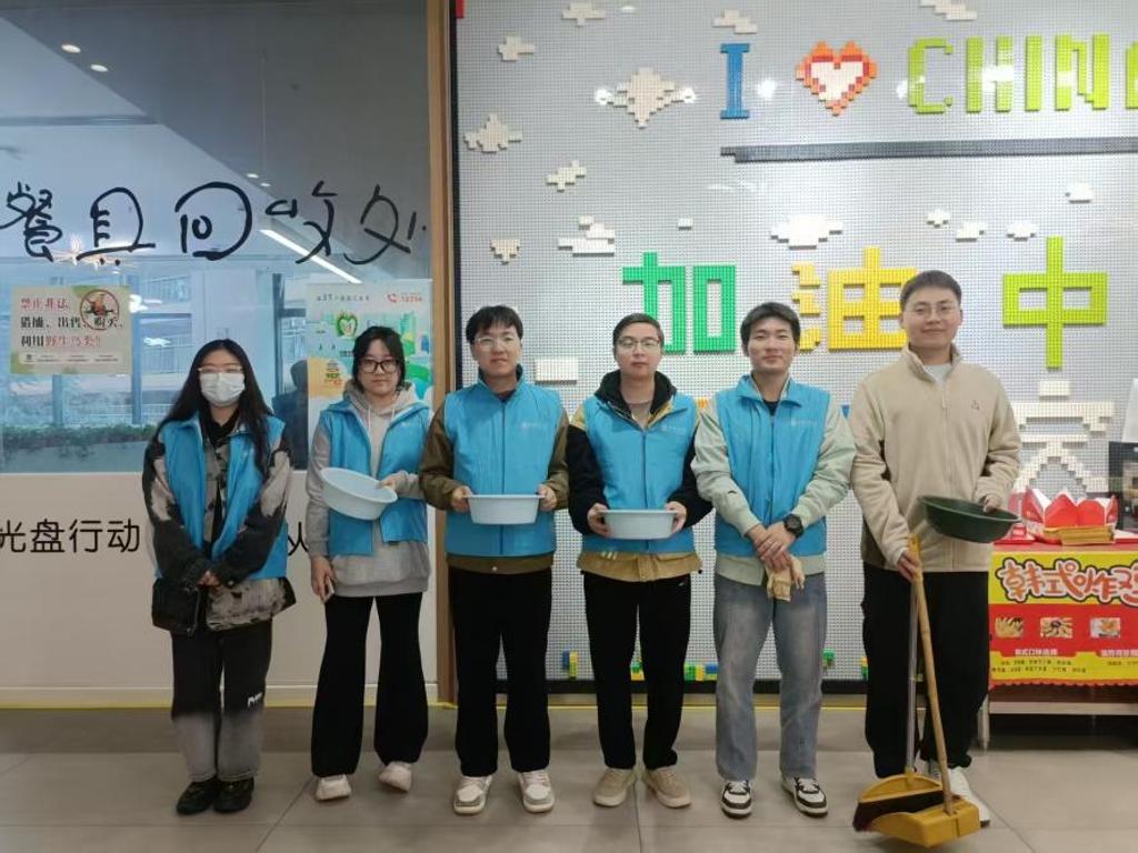 随后开展的食堂文明餐桌行动中,党员们化身志愿宣传员,协助食堂工作人员打扫卫生,为用餐的师生营造干净整洁的用餐环境,将“为人民服务”的宗旨转化为微观实践,以小切口彰显青年党员的责任自觉。