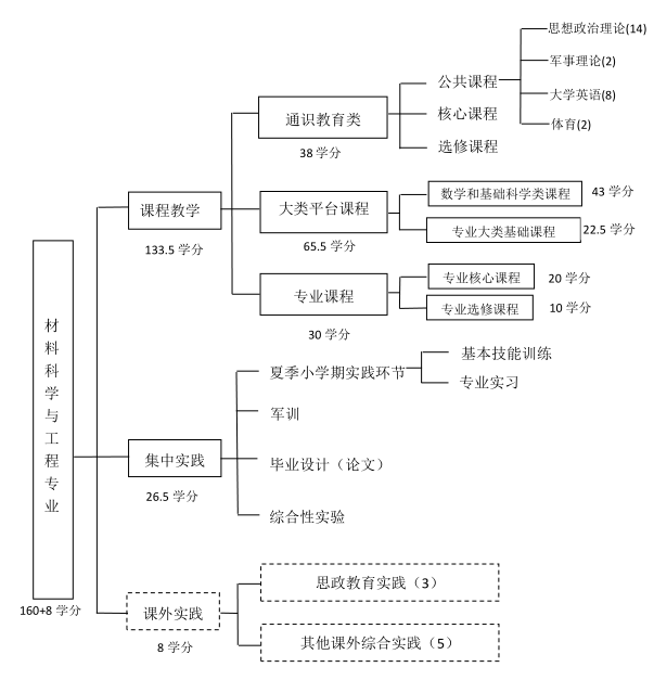 (3)社会责任与影响评估 人文社会科学素养深厚,责任担当意识强;在材料工程领域,熟悉材料开发、生产与应用、回收全过程中的社会、健康、安全、法律和文化问题,并有效评估其对使用人员和公众健康、环境、社会可持续发展的影响,自觉遵守材料领域的工程职业道德和规范,履行责任。