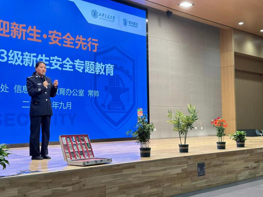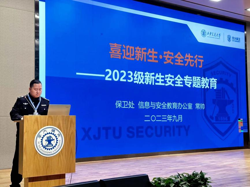 讲座最后,由学校保卫处信息与安全教育办公室的常帅老师进行校园安全教育。常老师提醒同学们要防范盗窃、电信诈骗,学习消防必备技能,平安出行,做到宿舍离人锁门,严格遵守学校制度,不在宿舍使用违规电器,骑车出行佩戴头盔,遵守交通规则等。